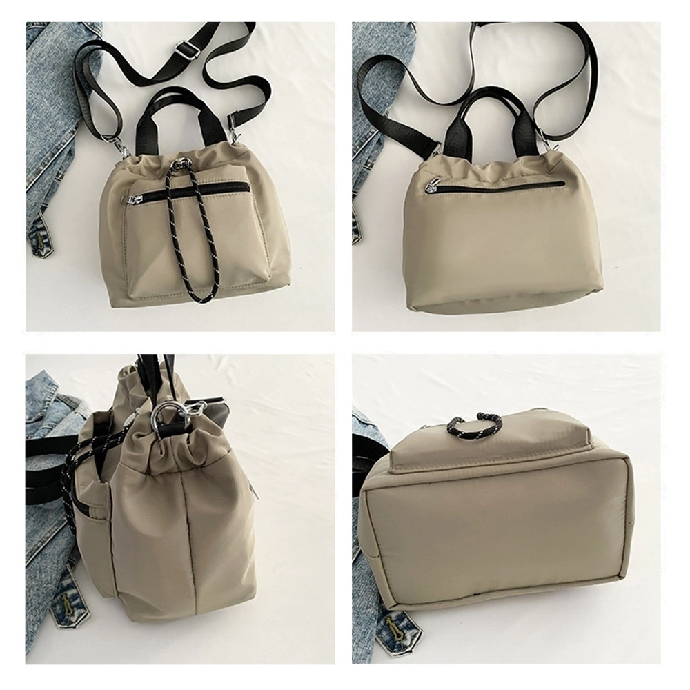 Espacio: Cuenta con un compartimento principal amplio y varios bolsillos externos, incluyendo uno frontal con cierre, perfecto para organizar objetos pequeños como llaves, móvil y otros accesorios. Dos tipos de correas, una corta para llevarlo en la mano y una correa ajustable y desmontable para colgarlo al hombro o cruzarlo al cuerpo. Perfecto para el día a día, combinando estilo casual con la capacidad de adaptarse a diferentes necesidades, desde salidas informales hasta actividades al aire libre.