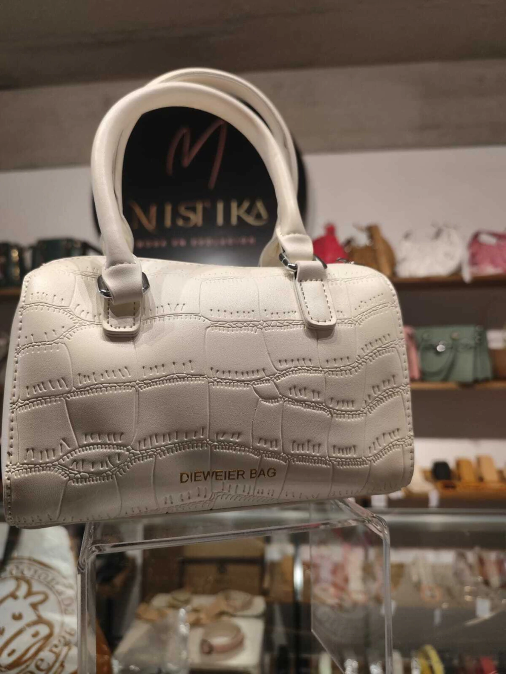 Equipada con dos asas superiores firmemente sujetas mediante herrajes metálicos de acabado pulido, garantiza resistencia y durabilidad en el uso diario. La forma de la cartera proporciona una excelente organización del contenido, permitiendo llevar objetos personales como billetera, llaves, teléfono móvil y pequeños artículos de maquillaje sin perder la estética ni la funcionalidad.