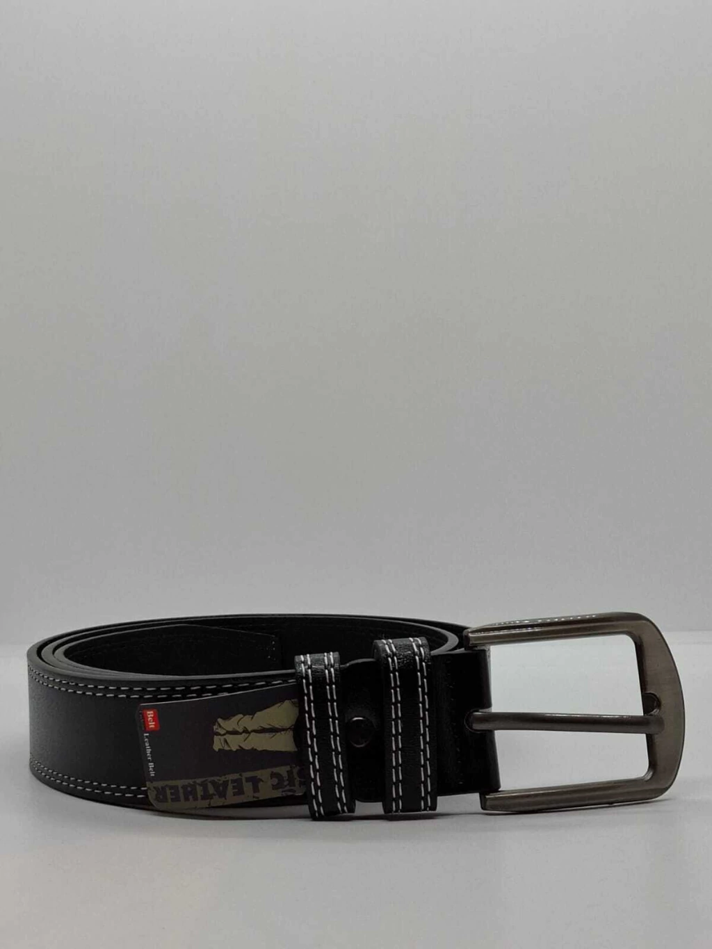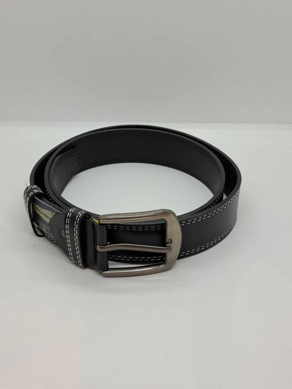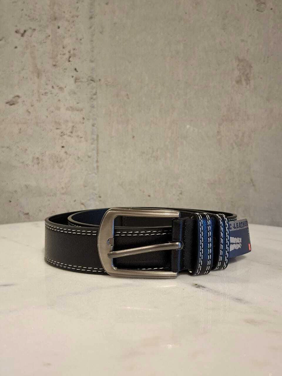 Cinto para hombre confeccionado en material resistente con terminación de costuras a la vista que le aportan un estilo moderno y versátil. Su hebilla metálica de diseño clásico completa un accesorio práctico y duradero, ideal para el uso diario y para complementar distintos outfits.