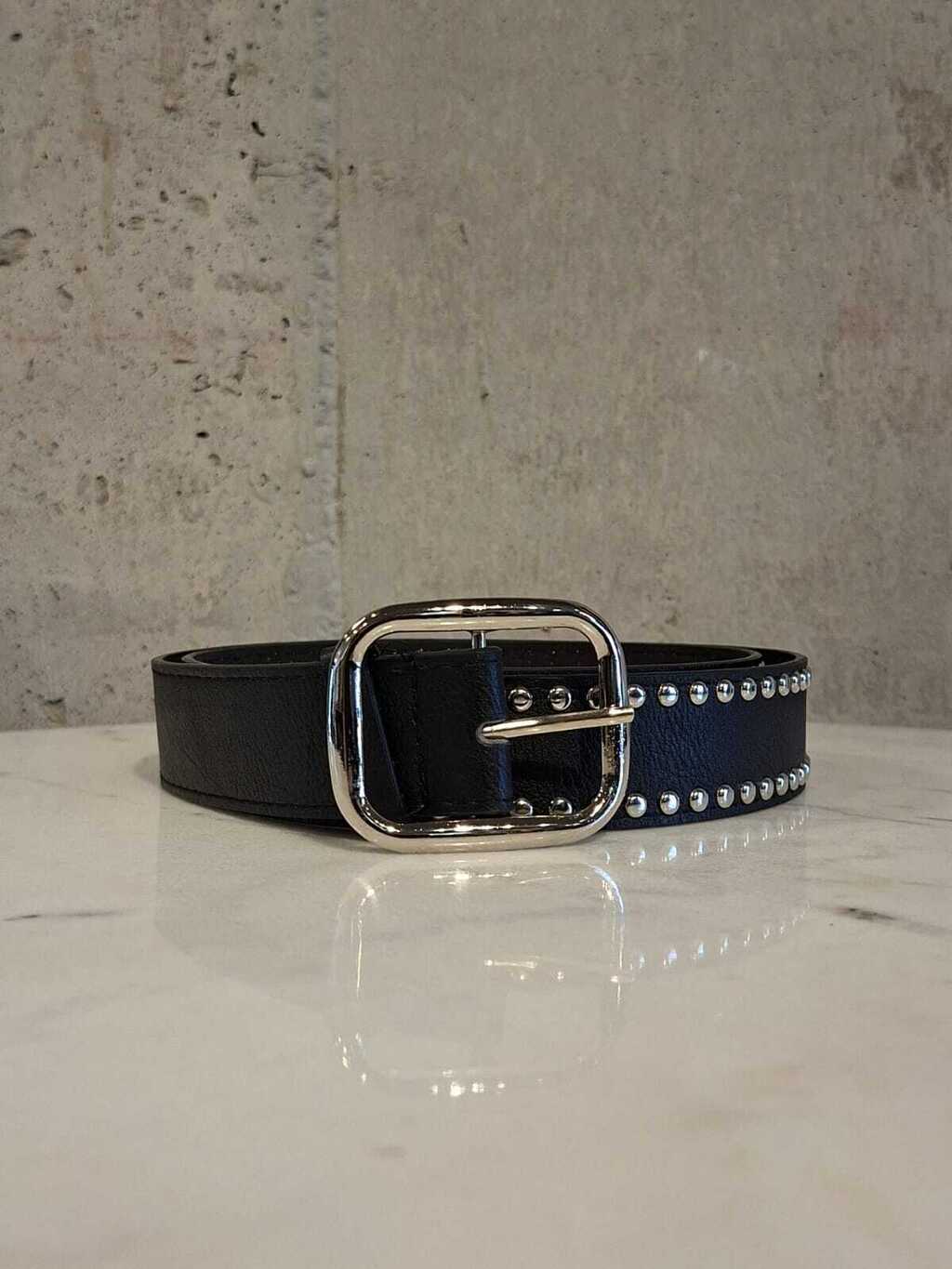 Cinto Ariana de la marca Mistika, confeccionado en material resistente con diseño moderno y detalles de tachas en todo el largo. Su hebilla metálica de estilo rectangular aporta un toque distintivo y versátil, ideal para complementar diferentes looks. Un accesorio práctico y con personalidad que combina funcionalidad y estilo.