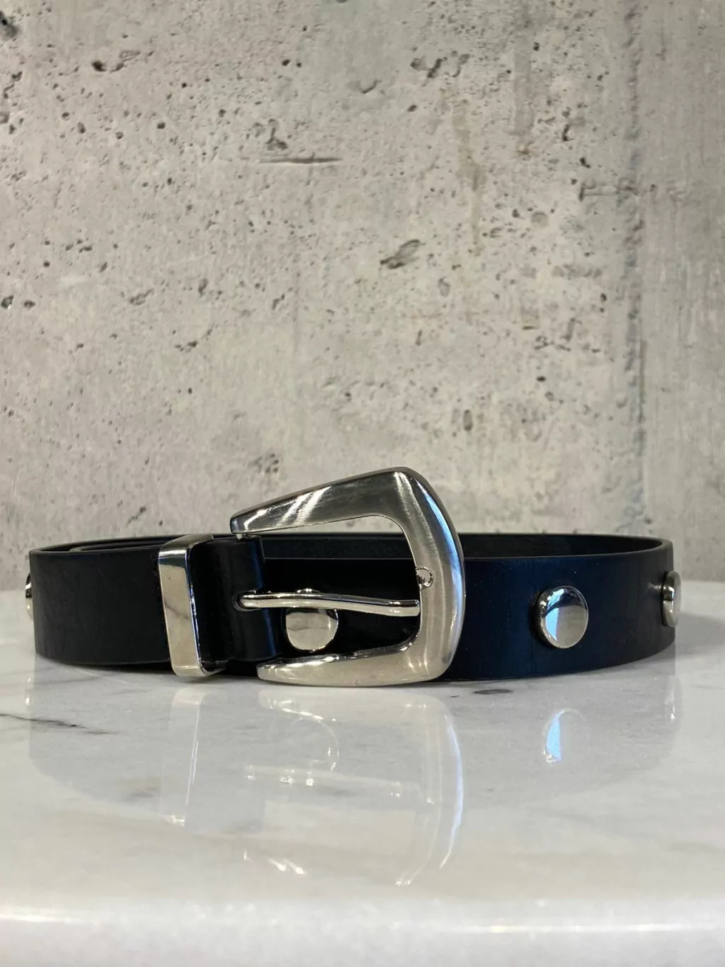 2- CINTO DE eco CUERO CON LINEA CENTRAL DE ARANDELAS Y TACHAS CUADRADAS