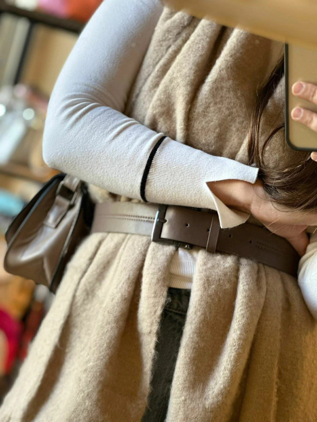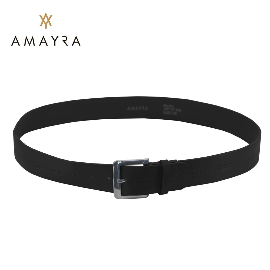 Cinturón de diseño clásico y minimalista, ideal para el uso diario o para ocasiones formales. Confeccionado en material sintético resistente, presenta una terminación lisa con costuras reforzadas y hebilla metálica rectangular.