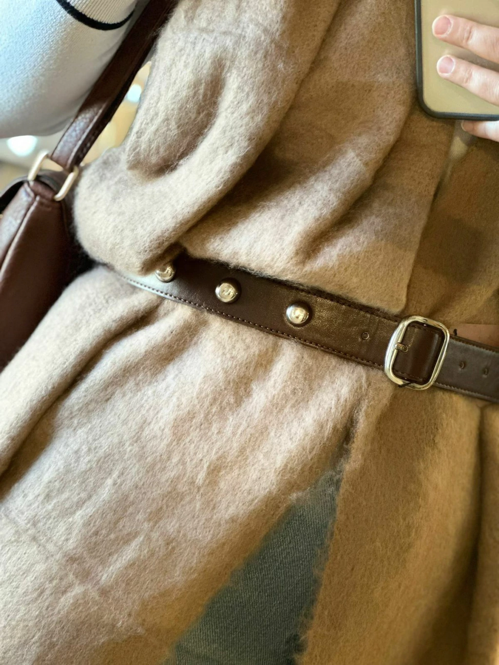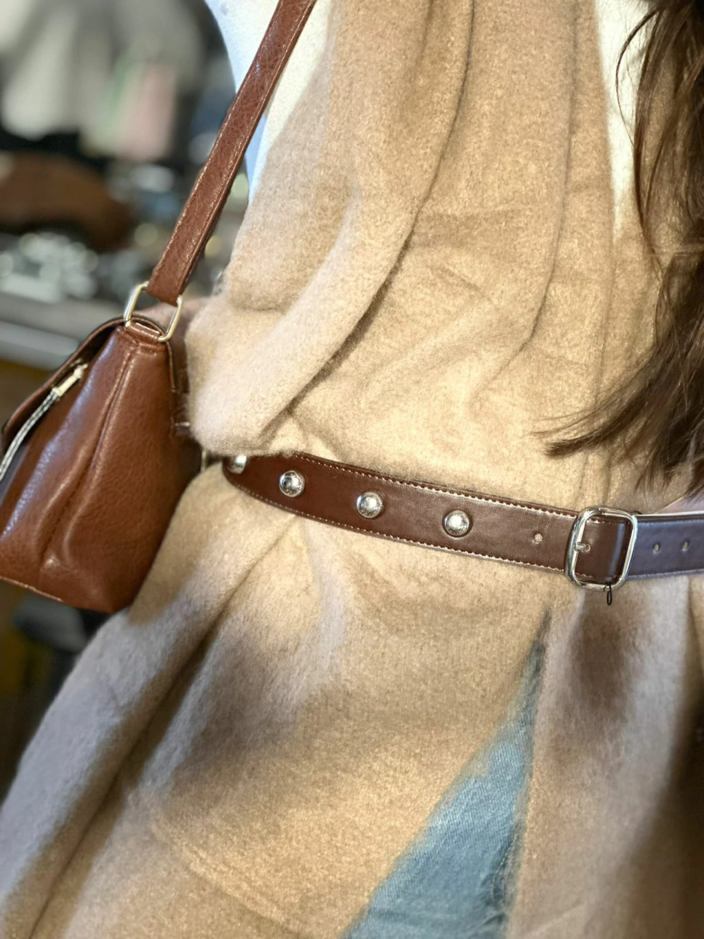 Cinturón de diseño clásico y minimalista, ideal para el uso diario o para ocasiones formales. Confeccionado en material sintético resistente, presenta una terminación lisa con costuras reforzadas y hebilla metálica rectangular.