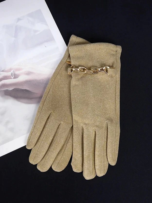 Guantes De Mujer Con Abrigo Gamuzado Táctiles Con Cadena