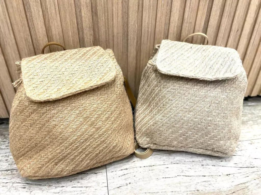 Mochila de rafia con tapa imantada y tiras regulables de símil cuero. Forrada en su interior con dos compartimientos.